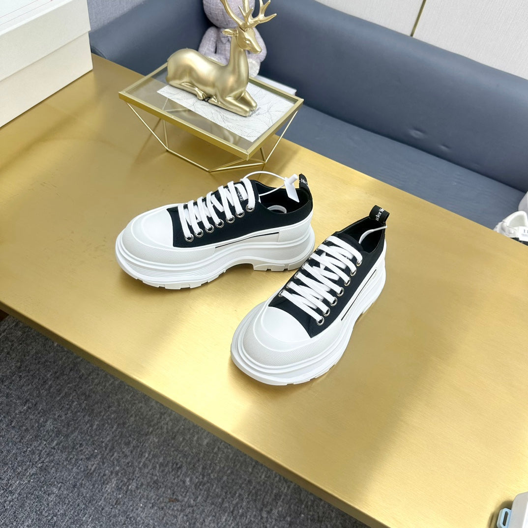 TREAD SLICK LACE UP SNEAKERS IN BLACK CANVAS WHITE RUBBER SOLE