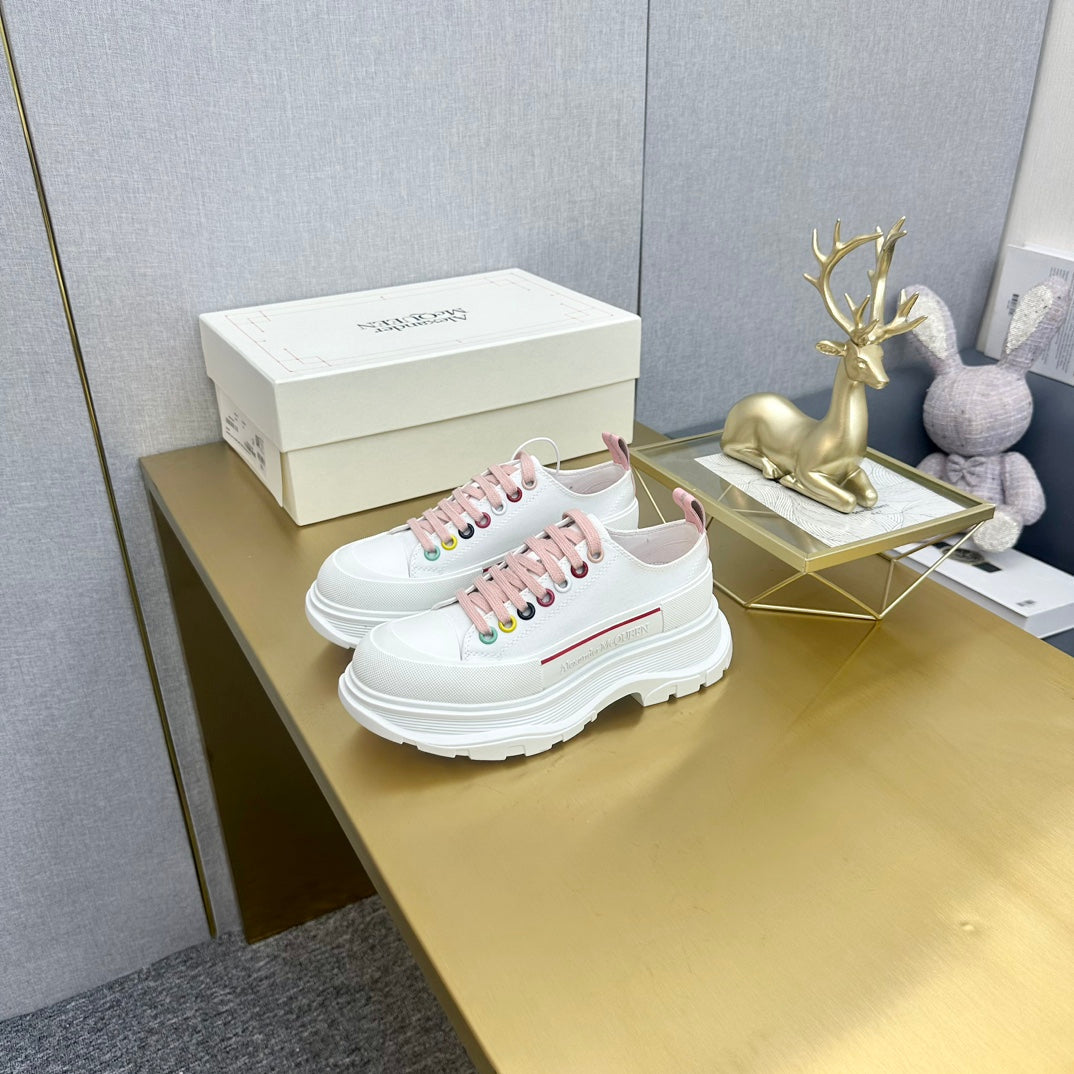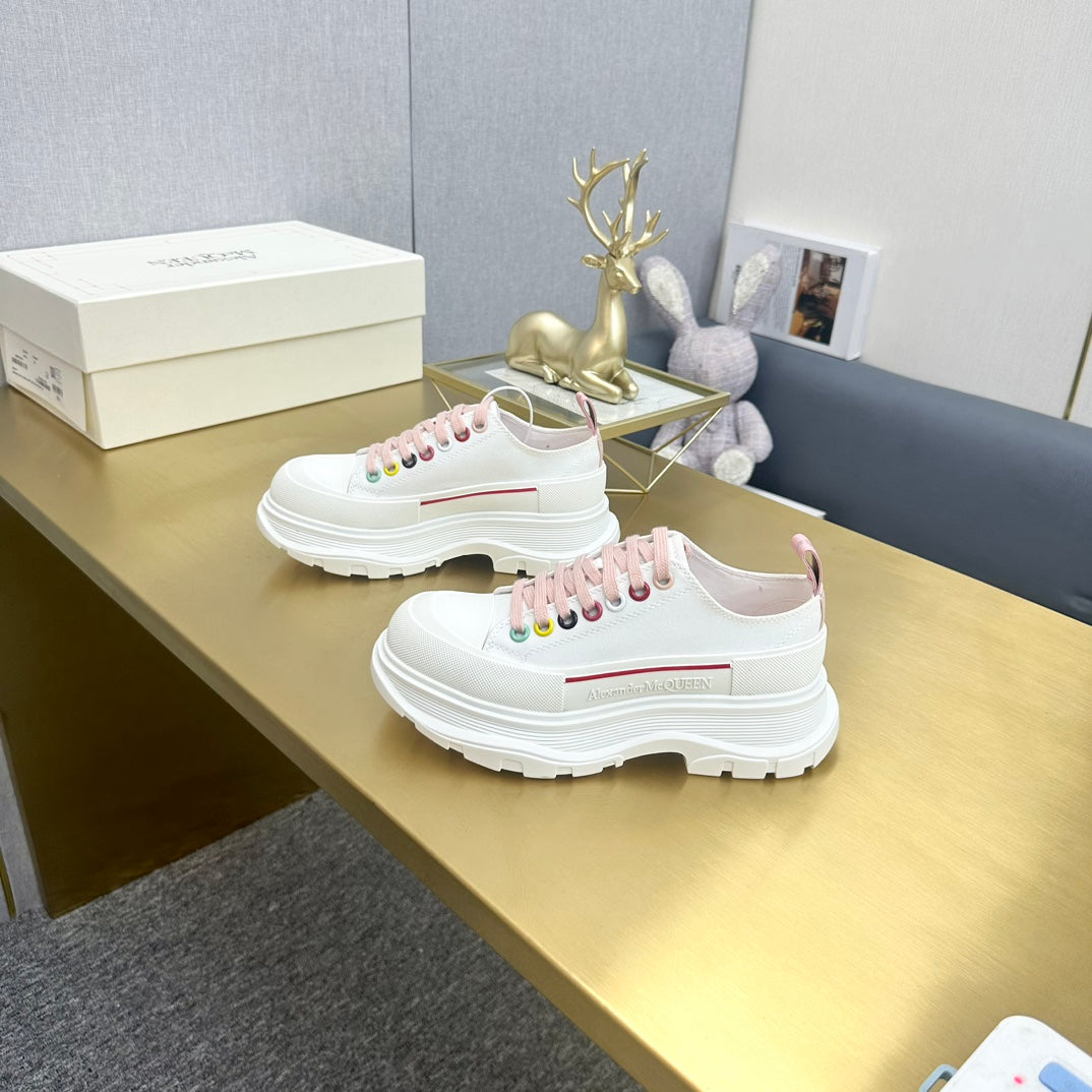 TREAD SLICK LACE UP SNEAKERS WHITE CANVAS PINK LACES MULTICOLOUR EYELETS