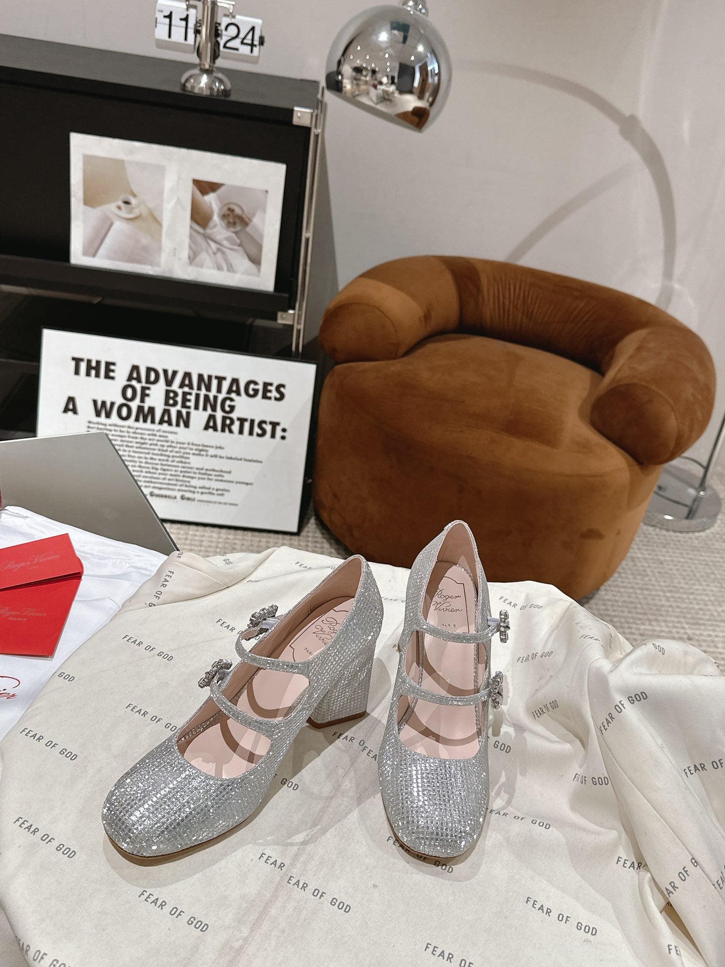 TRÈS VIVIER MARY JANE DOUBLE-STRAP PUMPS IN SILVER CALFSKIN FULLY EMBELLISHED CRYSTALS