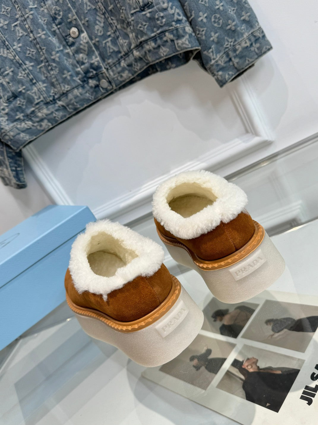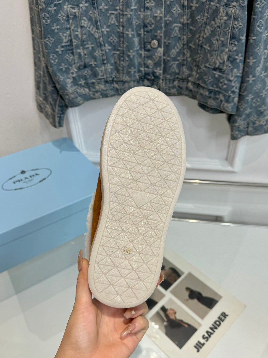 TRIANGLE LOGO MULES IN BRONZE BROWN SUEDE AND SHEARLING LINING